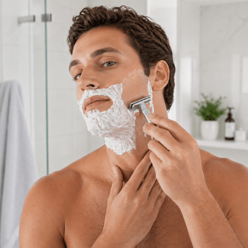A textured handle ensures a stable, slip-free hold — even with wet or soapy hands. Built for precision and safety, this razor performs as good as it looks.